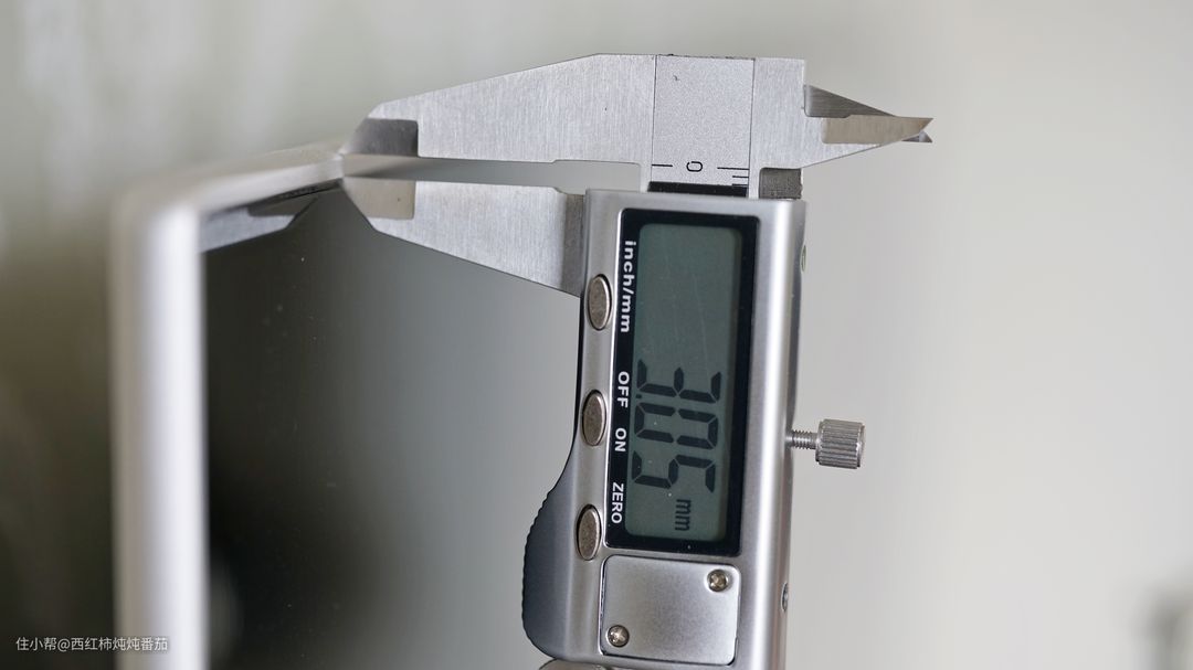 顺便再展示一下这台超5边缘最薄处厚度。游标卡尺显示为 3.05mm(为了挂住卡尺,测量值是比实际值要大一些的)。这是什么概念呢?