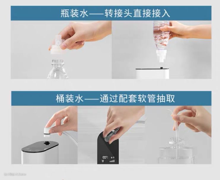 ▲转接头直接接入(适配市面上大部分瓶装水,建议瓶装水容量不超过1000ml)