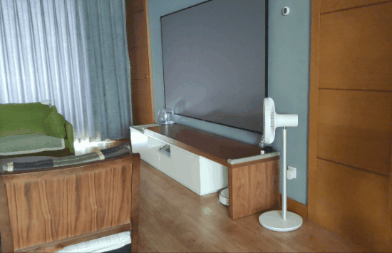 ▼楼主在距离风扇4.5米左右的位置测试 ,送风完全没有问题。一般家庭而言4M的距离足够使用了。