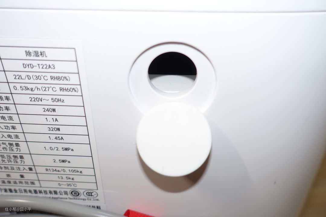 这款除湿机的额定功率是240W,最大功率是320W。我查询了其他几款国产品牌的额定除湿量在20L/D左右除湿机,他们的额定功率大多在300W以上。所以,这台DYD-T22A3除湿机的能效比相比其他国产除湿机算是比较高了。