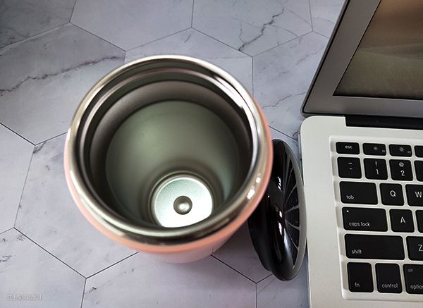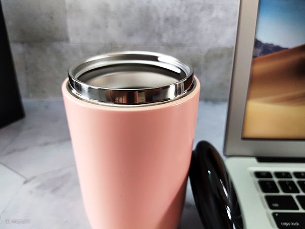 至于保温性能,做得也是非常好,不过对比一些专门的保温杯来讲,还是略逊一点,毕竟它里面存在降温液体。盖上盖子后,杯身完全感觉不到任何的温度变化,唯一的温度便是就是杯盖与杯口的衔接处,杯盖口没有橡胶,所有温度损失的比较厉害。中午12点66℃,到下午3,4点左右就基本凉透了。