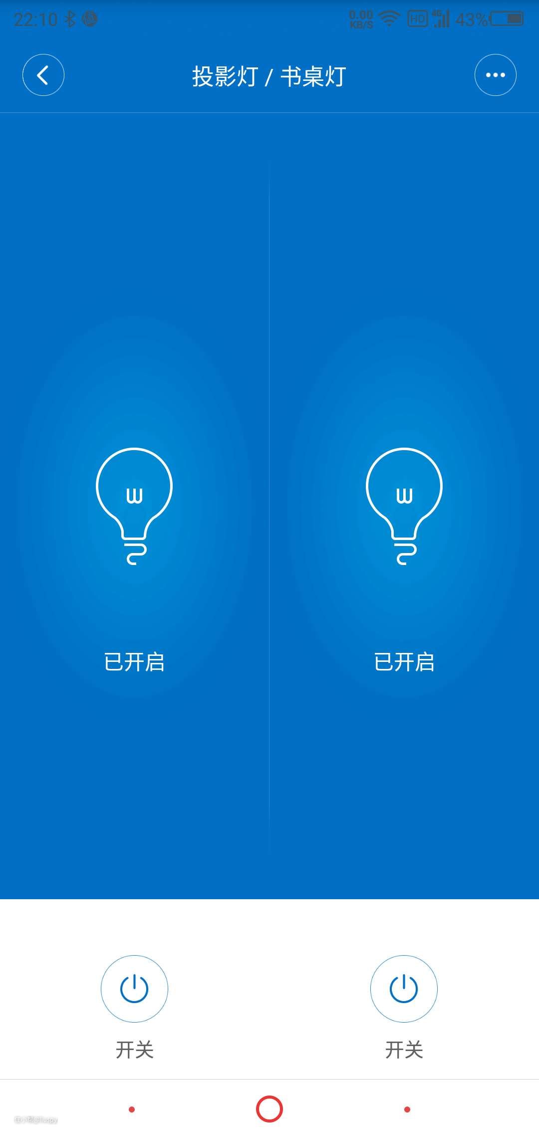 ▼随便点入一个开关,可以看到通过APP遥控控制,同时能够看到照明的开启或关闭情况