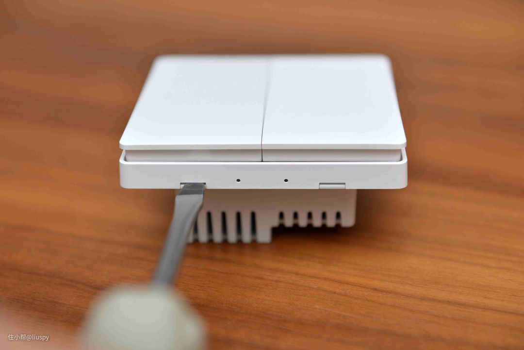 ▼首先我们同样需要打开aqara墙壁开关的前面板,同样用螺丝刀插入凹槽就可以打开了