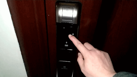 ▼指纹识别开锁也是日常中使用频率最高的开门锁方式,在实际体验当中,纽威尔智能锁在开启仓盖和指纹识别都是非常灵敏的,识别率也很高,识别成功后数字输入面板的灯光会亮起闪烁同时也会有语音播报提示,楼主制作了GIF动图,可以直观的感受开门效果。