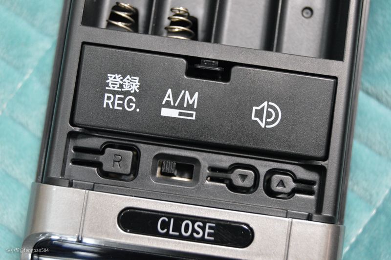 ▼在面板的中间,电池盖下方的位置有一颗印有CLOSE(关闭)印字的实体按键,在实际开关门使用当中会有灯光显示提示,也可以按下查看门是否处于上锁状态。