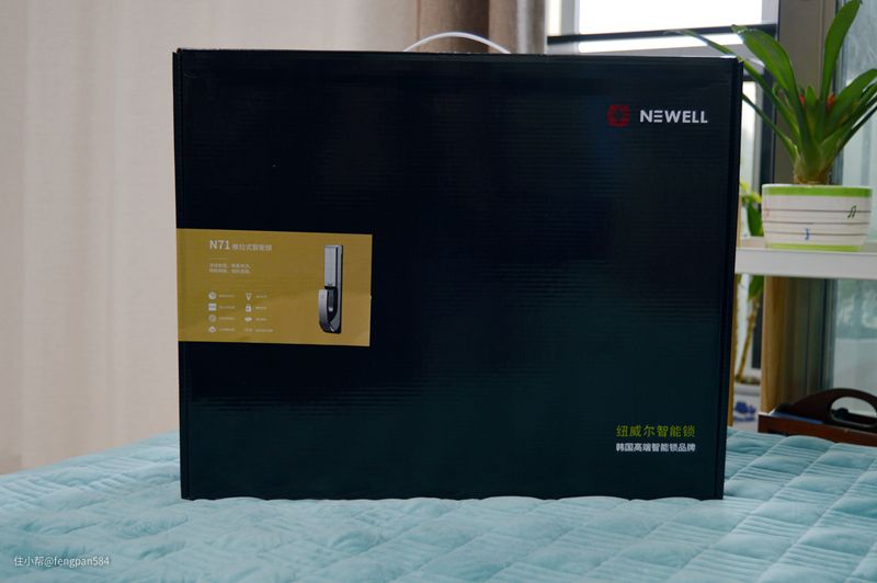 ▼收到快递后外包装箱是蛮大一个的,内置有气垫,锁体配件采用黑色的硬纸盒包装,简洁大方,在右上角有NEWELL的LOGO标识。