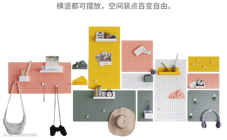 常见的洞洞板是木质或铁艺的,还有毛毡类、塑料洞洞板。