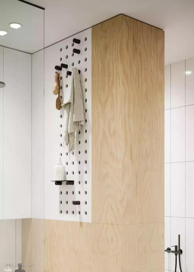 卫生间里的刷牙用具、清洁用具、毛巾、浴巾等洗浴用品,都可以挂在或者放在洞洞板上。但是也要考虑承重问题,防止物品掉落。