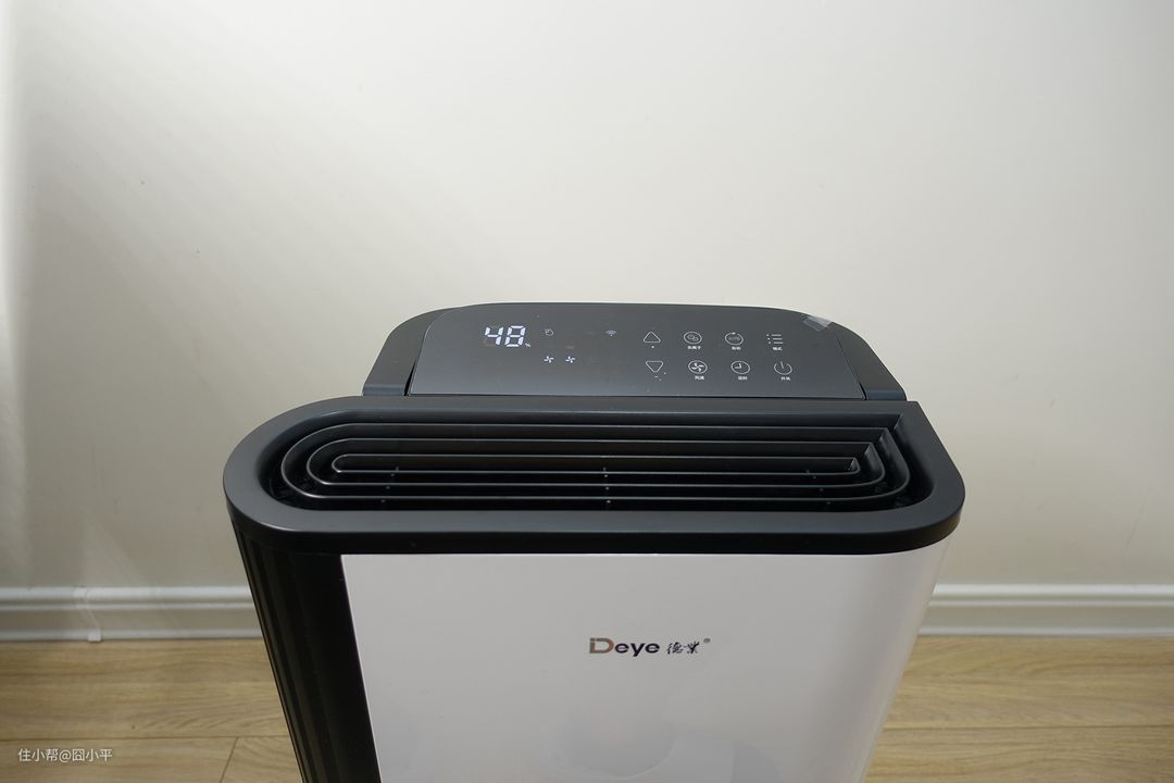 作为除湿机,最重要的自然是除湿能力了。德业DYD-T22A3的额定除湿量是22L/D,名义除湿量是0.53kg/h。我通过实际测试,实际除湿能力确实与标称相符合。22L/D额定除湿能力的适用面积是50平米左右,对于我家的小户型也比较合适。这款除湿机有三档风速可选。高速风下的噪声比较大,其余两档风速虽然也会有噪声,但应该不至于影响休息。目前除湿机普遍存在的一个问题是除湿的同时会造成室内温度升高。因此,在炎热的夏季,自然要搭配空调使用,且空调温度要调低一些。