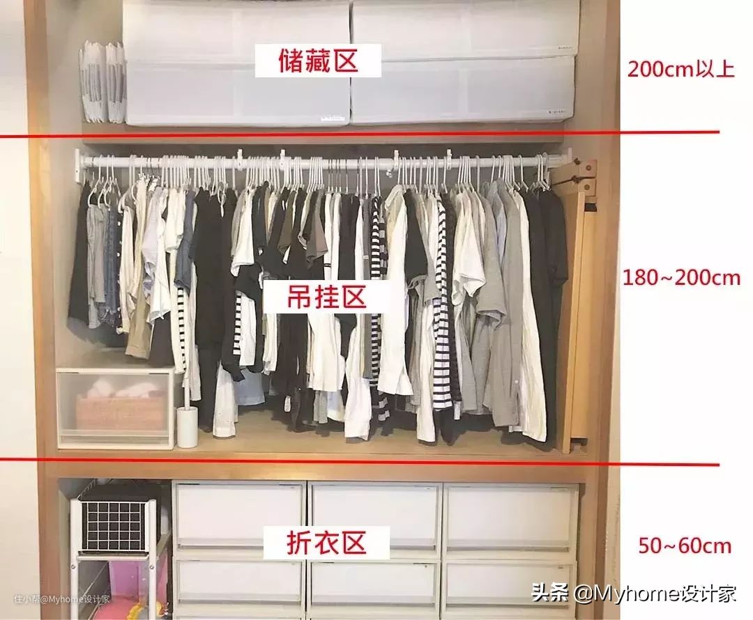 布局先从使用频率与好拿程度区分,可分成吊挂区、折衣区、储藏区