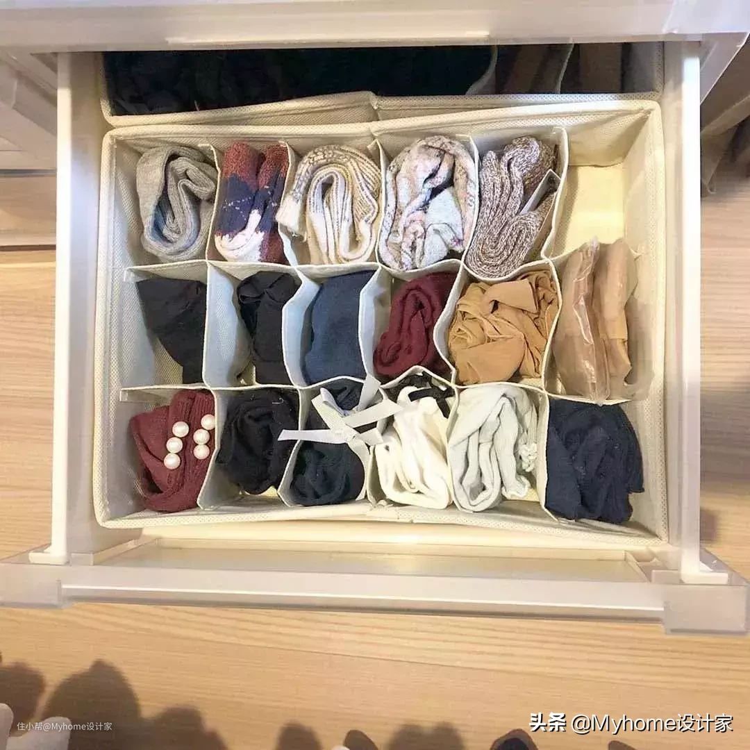 自带搁板的收纳盒适合收袜子等小物件,收得又多又整齐。