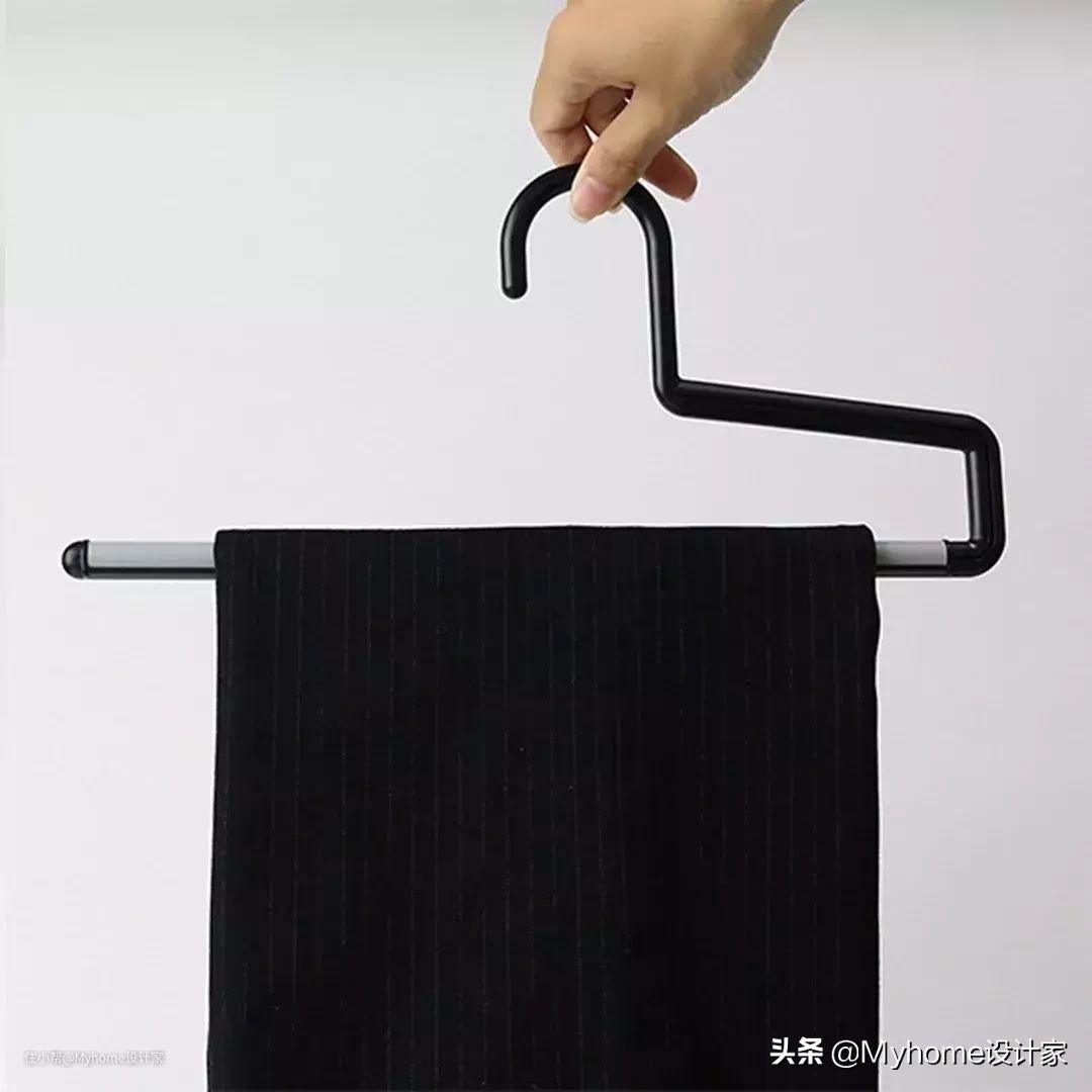 利用有开口的S型衣架,不仅本身体积小不占空间,拿取也更方便。