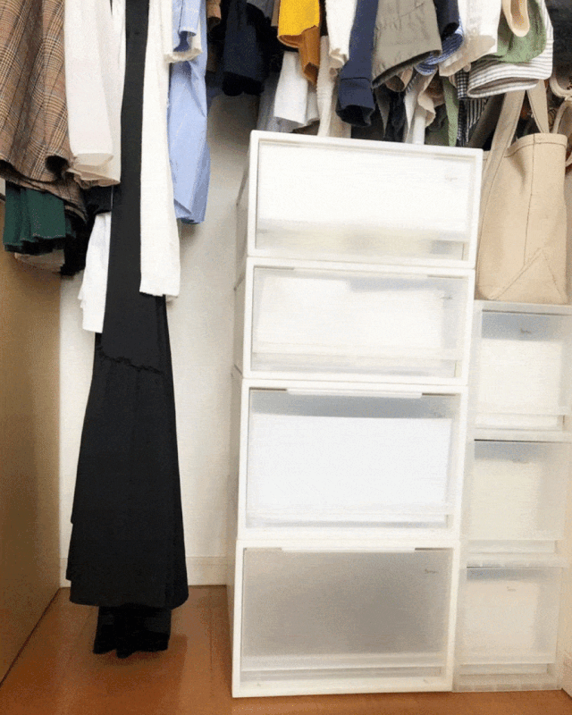 不妨利用这种侧开式收纳箱,即便衣服放在最下层也能一秒拿出,再也不用花费太多力气。