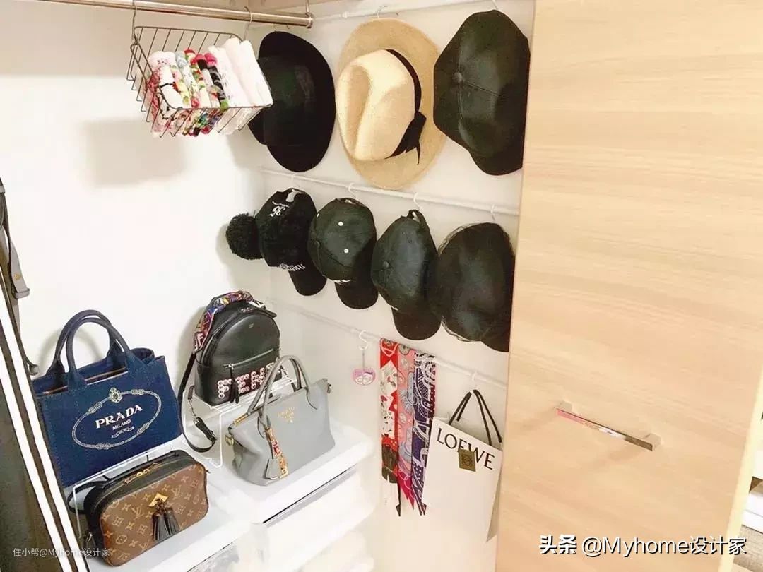 利用伸缩杆,就多了三排的收纳区,帽子、首饰、皮带都能收。