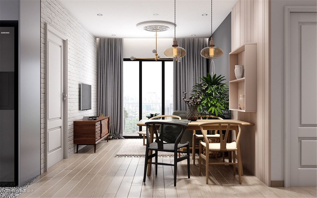 餐厅区域可以设计成紧挨厨房,下厨成果可以直接享受。同样,在选择家具上不建议大型并且多件的,刚刚够家庭成员就可以。同时,餐厅的墙面可以做更多的装饰与储物空间。