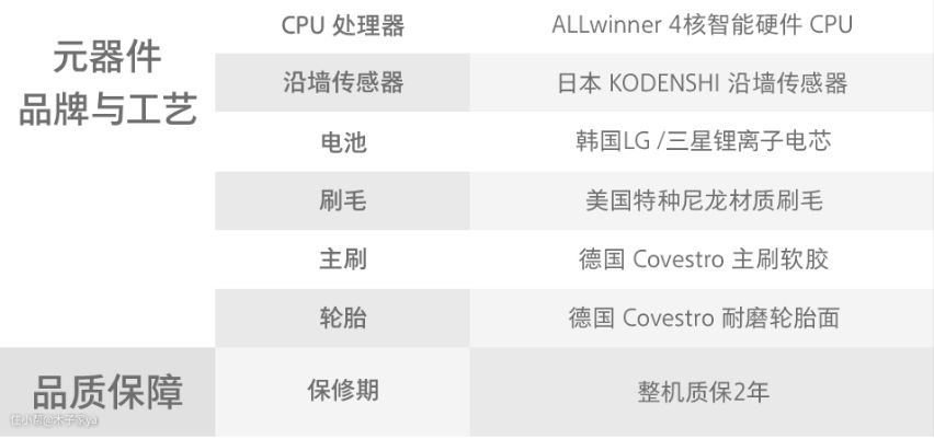 这些配件都采用的是世界知名的硬件供应厂商的,从核心处理器、IT数字信号处理器到马达、风机、电芯、陀螺仪,乃至上盖、刷毛、轮胎都是来自于行业数一数二的品牌。