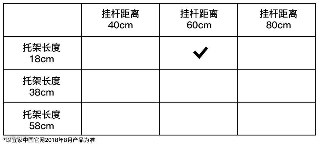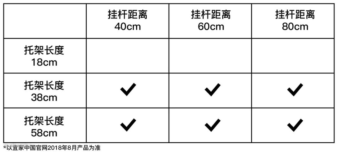 一根挂杆上的托架可以长短不一,像是可以下面用58cm托架做桌子,上面用18cm托架放书。