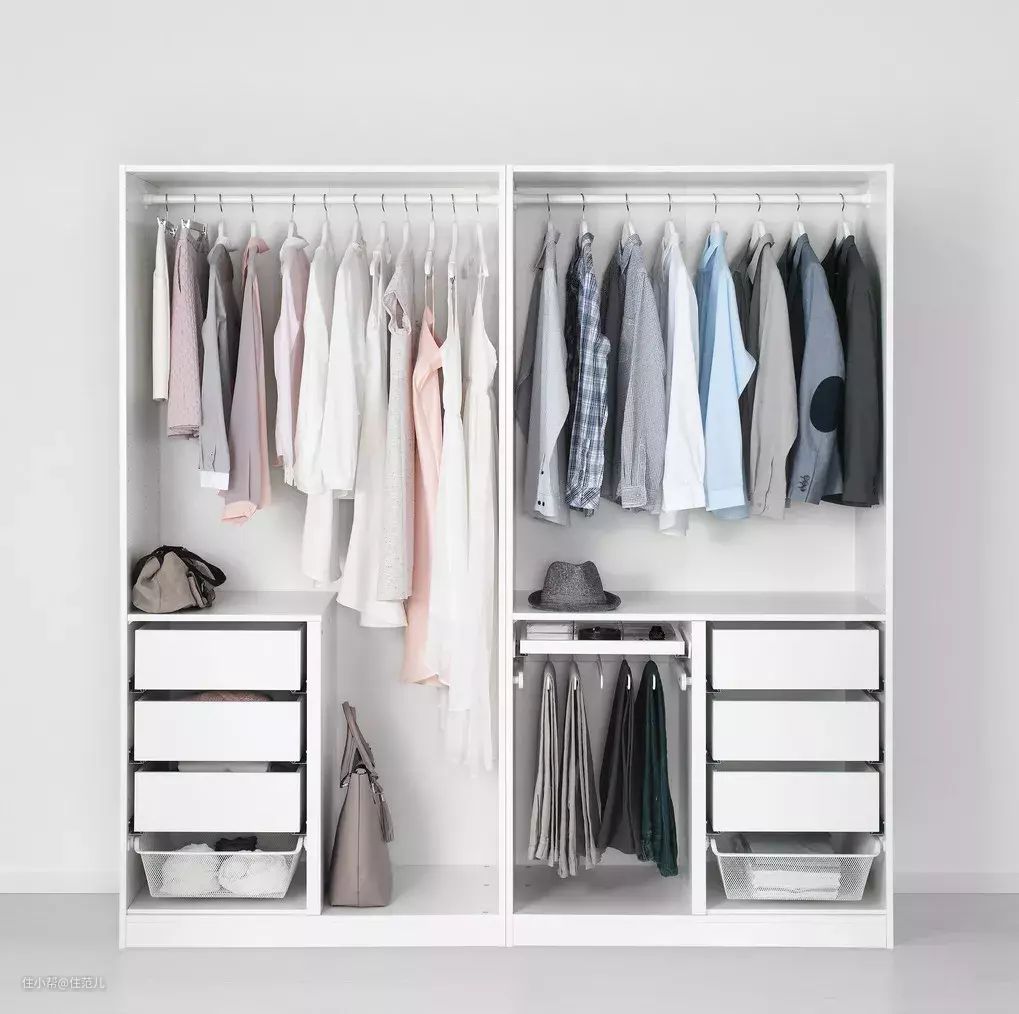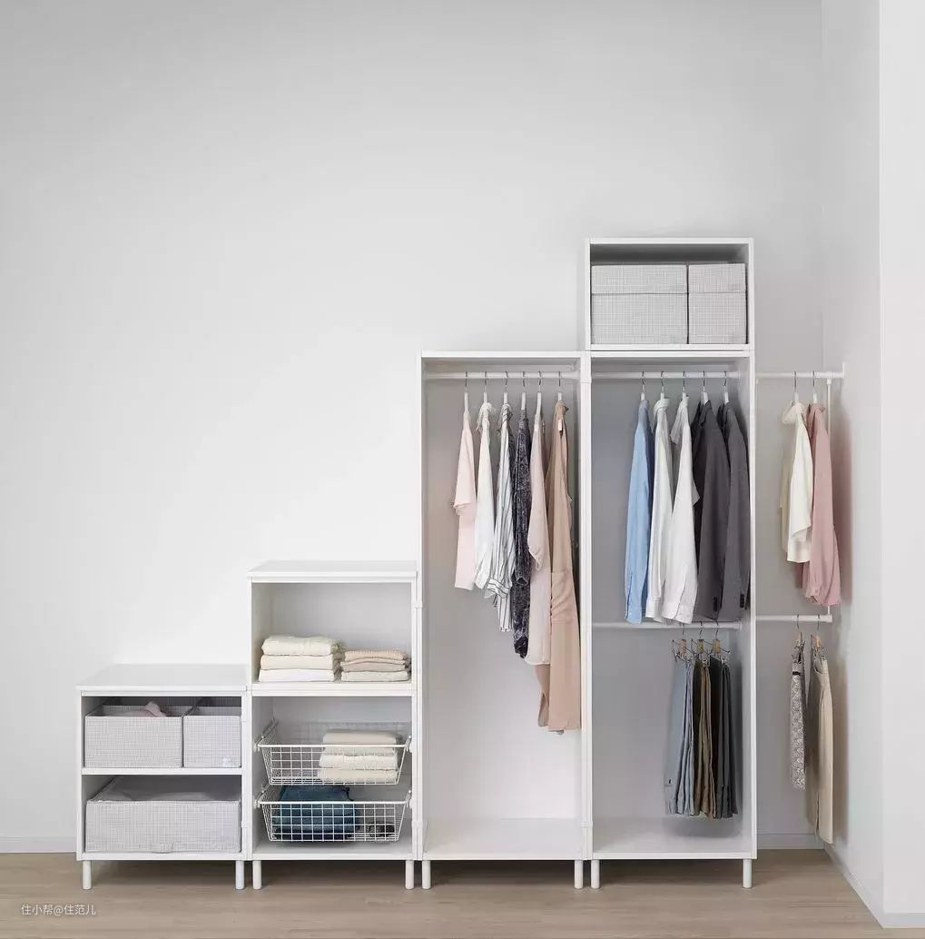 宜家的组合式衣柜分为帕克斯、普拉萨、艾格特和爱尔瓦丽4个系列,前两者是比较传统的衣柜,后两者是开放式的储物。