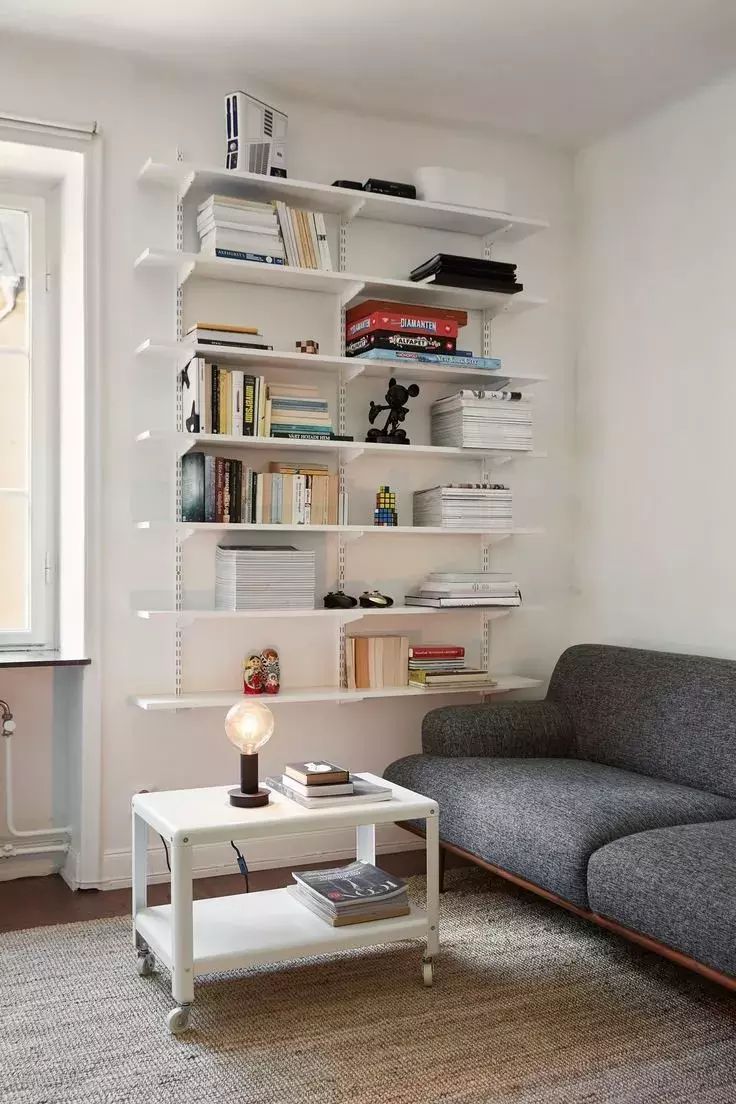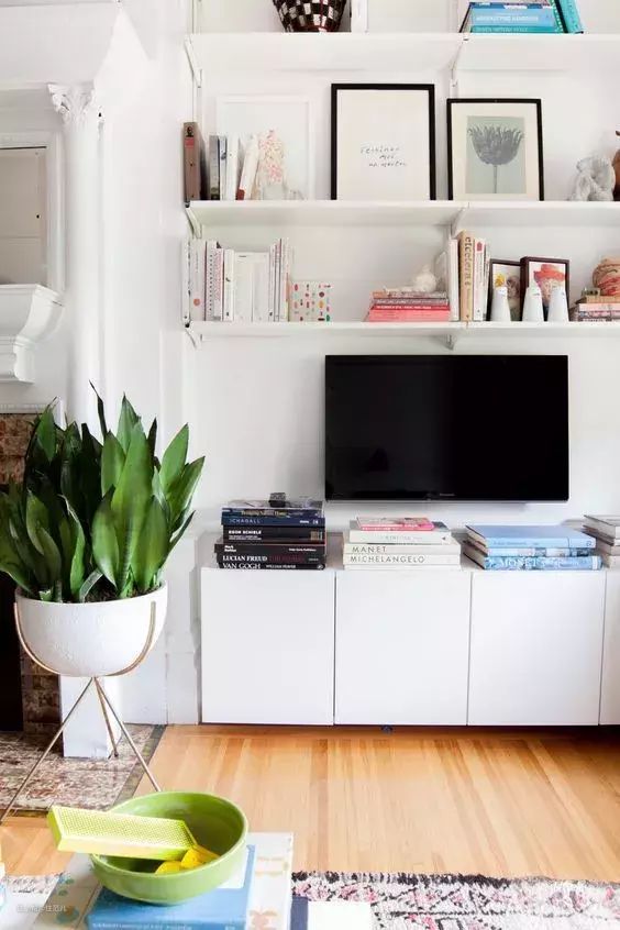 客厅里搭一面书墙或展示墙,当然要拿来当作电视墙也没有问题。