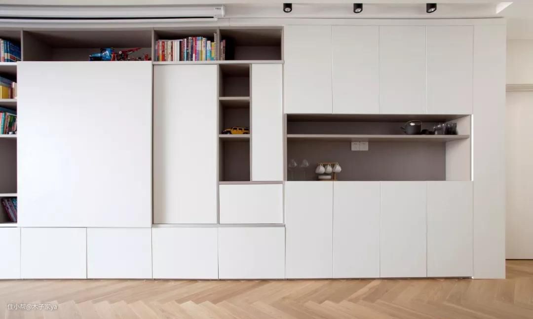 有些人说做这么多柜子,搞卫生的时候想死。如果不想经常搞卫生,想要保持干净整洁,做柜子要注意技巧。如果不是一个特别勤快的人,不是很建议做全开放式柜子。可以考虑把柜门全部做上,当然如果家里藏书多,可以留部分做开放式书柜。