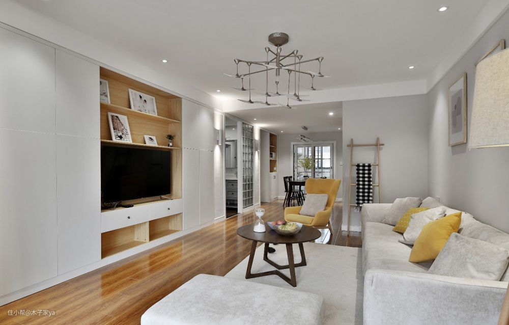 1、白色是经典选择,以白色为主,再搭配木色或其他颜色显得自然,建议白色比例大一点,其他色比例小一点。