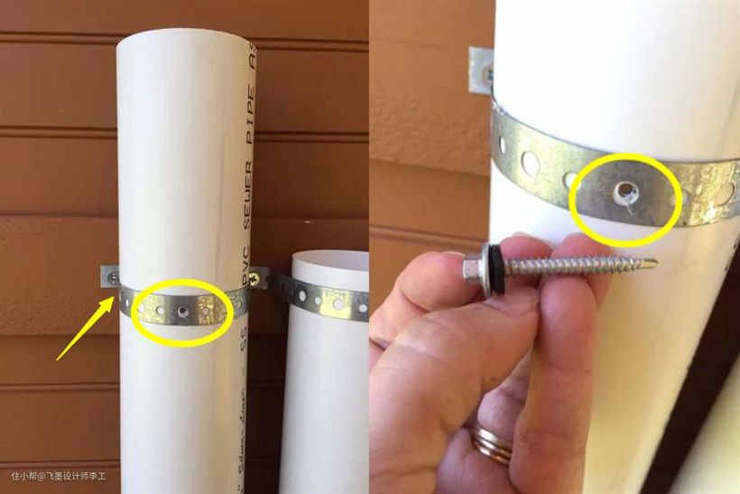 先在墙面上安装1块底板,这样更方便将这些水管安装上墙。