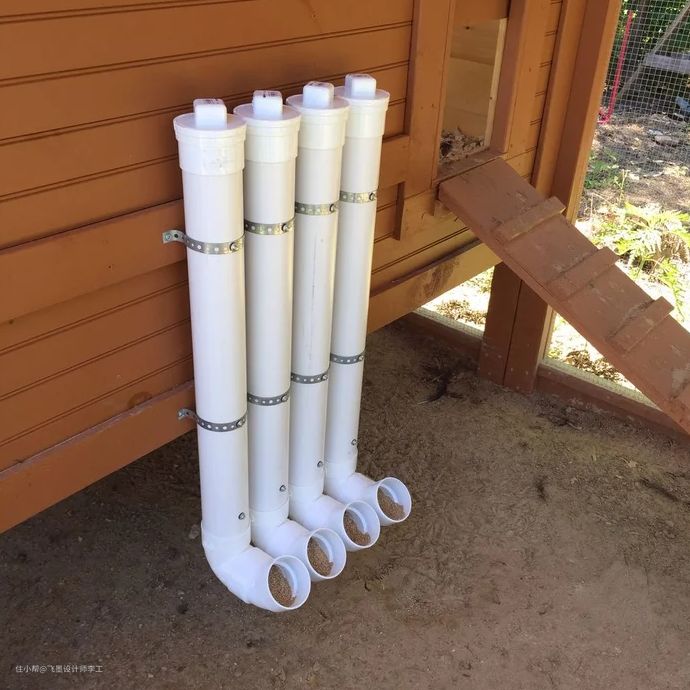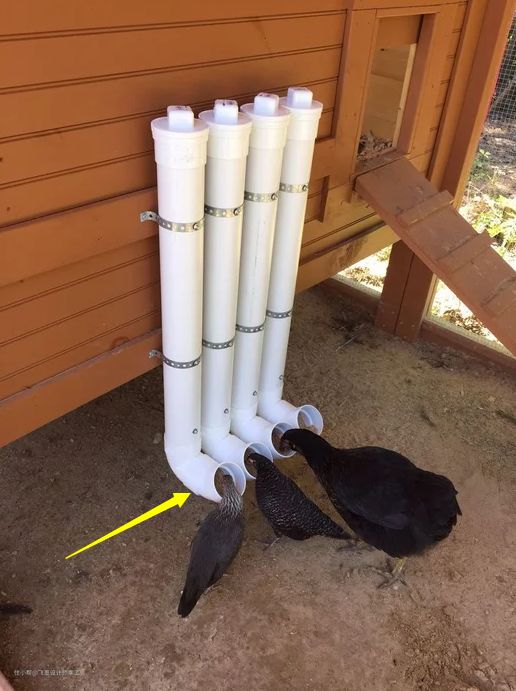 pvc管道改造见过不少了,不过今天给大家分享的pvc废旧水管改造可大不一样,原来是有人经过简单改造后锯半截高并一排放在院子里用来喂鸡,喂起鸡来井然有序的,平时只要将饲料放到PVC管的“喂食器"里,自动就能够吃食了,方便还不占面积,多省心!