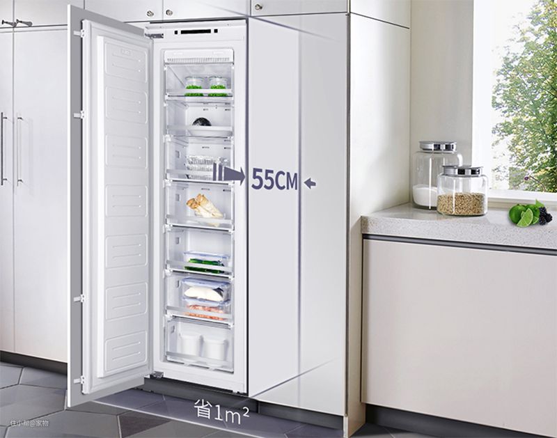 因为冰箱和柜子是一体的,所以冰箱的位置相当于是固定的,一般情况无法将其移动,想要选择内嵌式冰箱的小伙伴,一定要慎重考虑。