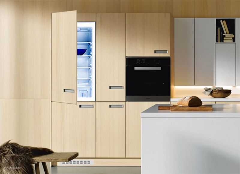 因为内嵌式冰箱的冰箱门,和柜子的门是连接在一起的,所以在开关冰箱的时候,直接拉动柜子的把手就可以,使用起来非常方便,比直接开冰箱的门要方便的多。