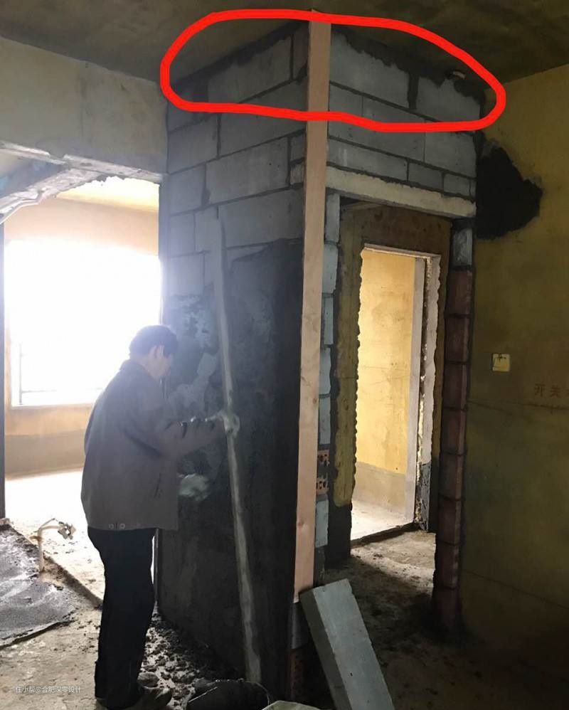 有关注过深零sir的人应该之后,这个问题之间有解释过,一次性砌到顶的话,后期天花与墙体交接处容易出现裂缝隙,所以一般都是底部砌好之后,留出顶部的几层砖过一两天再砌;