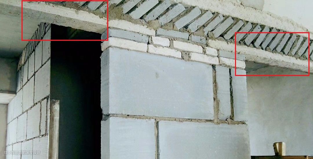 ▲这里需要注意的是,封顶的砖要倾斜45°,可防止墙体变形,且具有很好的抗震性,以上是错误的演示。