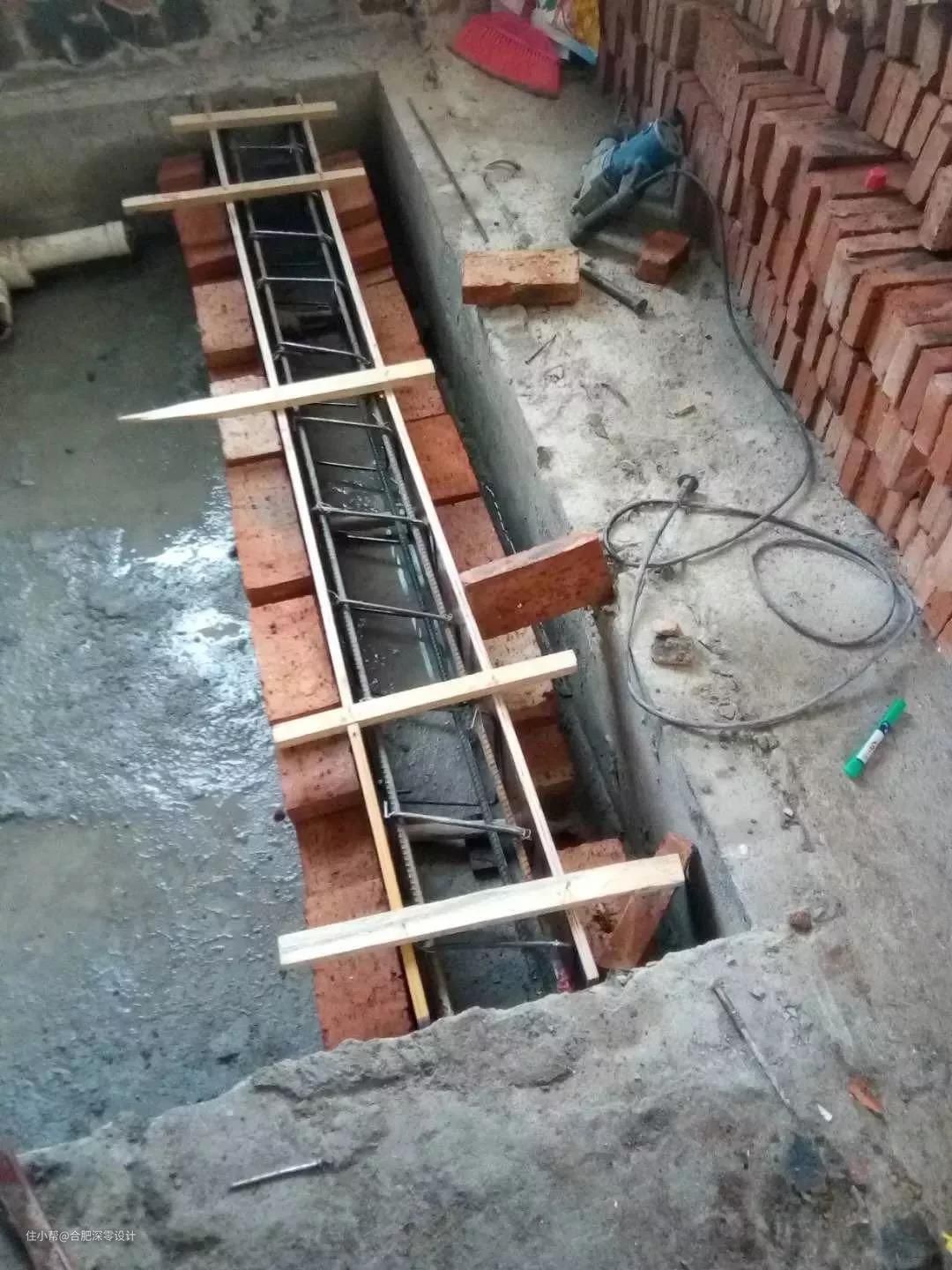 卫生间新砌墙体,要是你没有在底部浇筑防水梁,就算你后期防水层刷的再好,都没用,防水梁不能少,它可以防止卫生间从底部渗入隔壁空间。