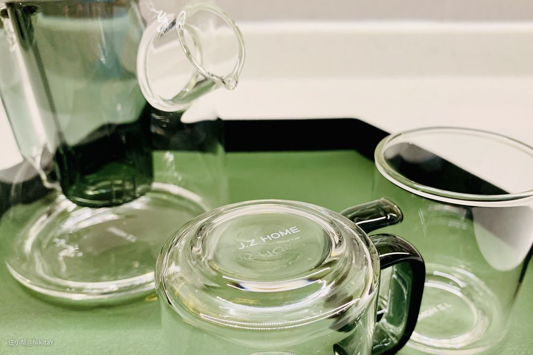 细节部分也是做得非常好,茶壶的盖子使用了百年北美「橡木」,而整体的玻璃采用了高硼硅玻璃,可以直接「明火」加热。壶身的底部和茶杯的底部都有几致漂亮的Logo,无处不体现着专业以及认真的态度。