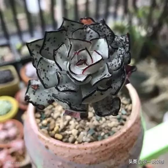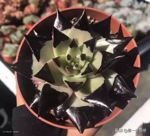 这棵小小的剑斯诺娃,就是那价值600万的多肉真身,它的叶片像绽放的玫瑰花,叶片边缘黑色,听说越黑越值钱。