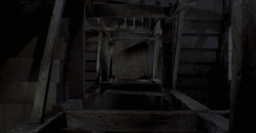 但他的影视中出现最多用来过渡剧情的便是螺旋楼梯,烘托了剧情的紧张感