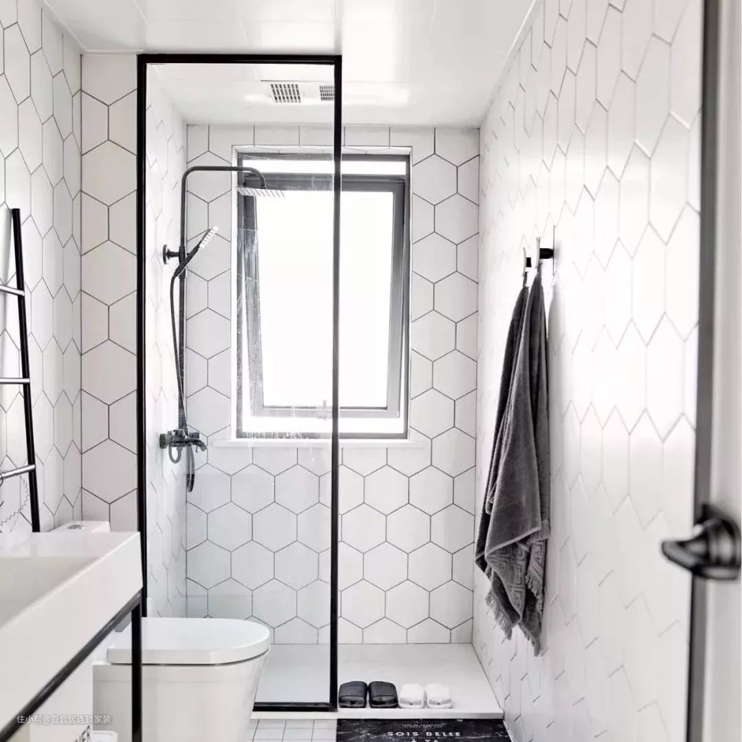 白色也是简约风的一个经典;卫生间里用耐脏的颜色的话,那么等到你觉得脏了的时候,可能真的就是无法清理了,而白色的墙面砖,可以让你在轻微有点脏了就发现并及时清理。