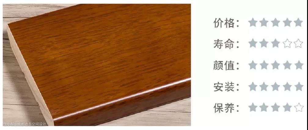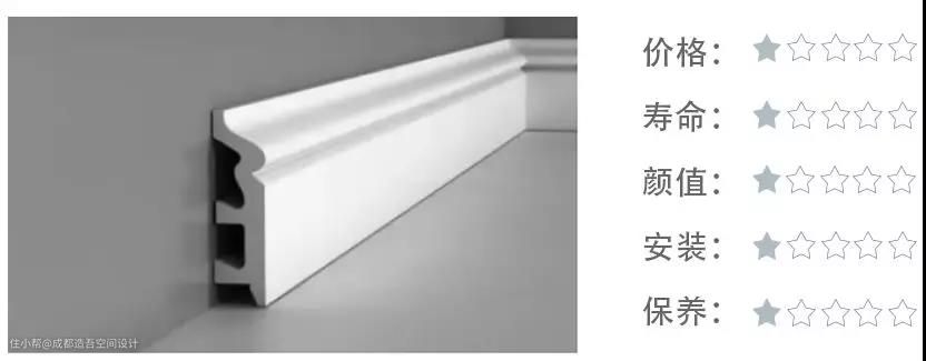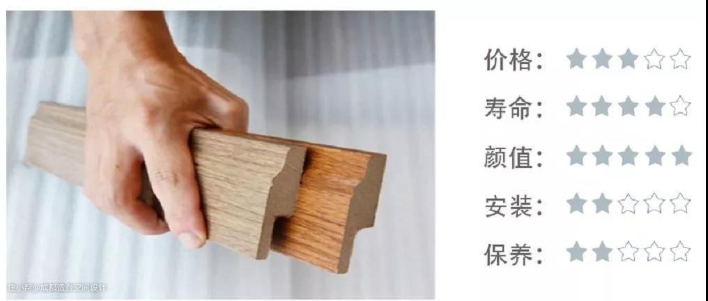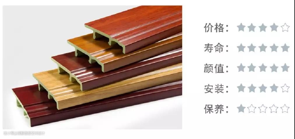 也称颗粒板、纤维板的中密度板,对比价高的实木踢脚线,它有着类比实木的质感和样式,且稳定性更强、造价更低,可以算目前市面上踢脚线选择性最高的材质了。