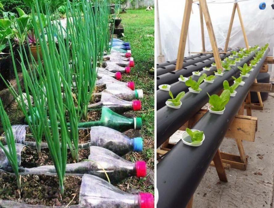 有时候可别小看了你随手扔掉的塑料瓶,随手改改用作其他方面,实用性大着呢!我老妈就喜欢把我们一家喝完剩下的塑料瓶留着,放在她的小院子里种种菜养养花,除了塑料瓶还有人会利用废旧的PVC管也能实现种菜养花,如图: