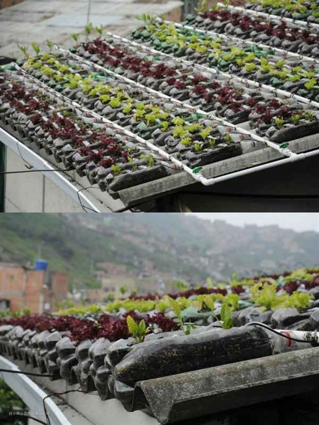 谁想出来的?塑料瓶和PVC放石棉瓦屋顶上种菜,做菜园省钱又省地