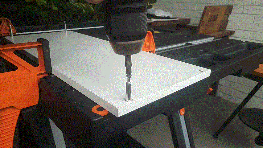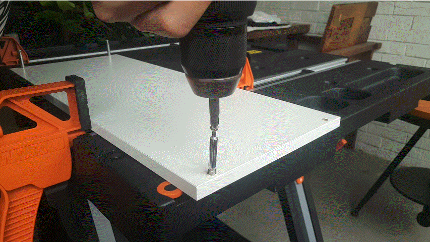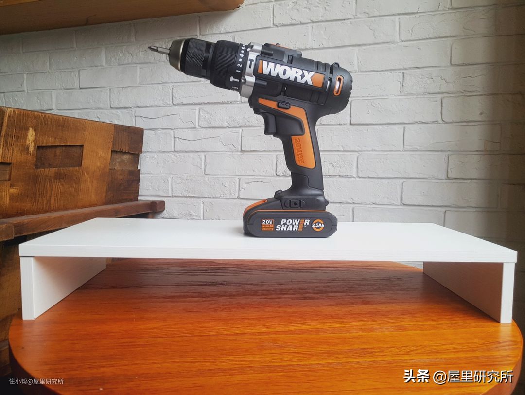 接着试试拧螺丝的效果,用它来弄一张笔记本加高桌吧,动图里可以看出,螺丝毫无压力的就拧进去了,对于我这种木工白痴来说属实是好东西。