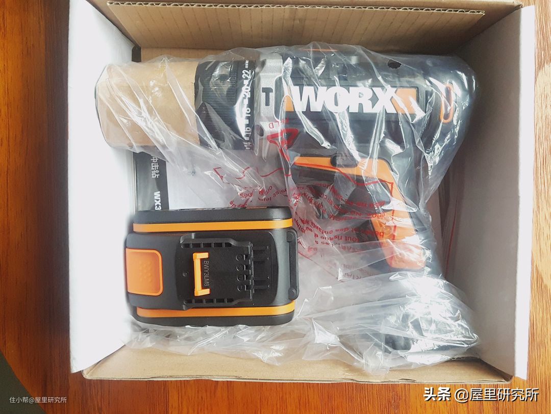 打开之后东西就在里面躺着,电钻被紧紧的包裹着,旁边还有个锂电池,静静的等待着我们把它拿出来大展身手,废话少说,把里面的东西拿出来给大家瞧瞧。