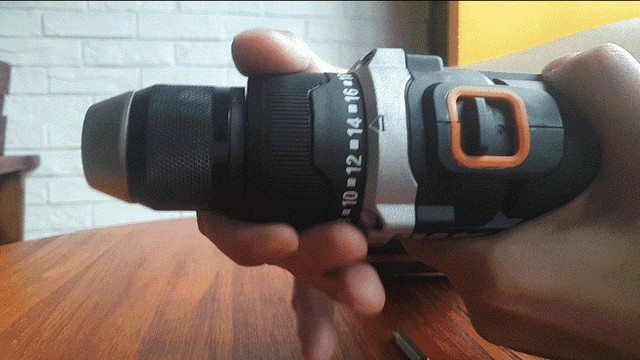 扭力罩附近我们可以看到一串数字和图案,这里是用来切换档位的。每个档位对应不同的使用情况,根据说明书介绍自行调节即可,这里就不多做介绍了,毕竟有24个档位,说完估计你们都睡着了。下面大家看看动图感受一下就好。