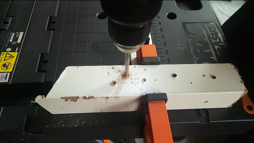 好了,移驾到工具台,找来一块木头,直接用威克士wx372开钻,可以看出wx372的同心度很够,基本不会有偏移的情况,而且速度和威力都很强,不一会就把洞钻出来了,平时家用,轻改装什么的真的完全足够了。