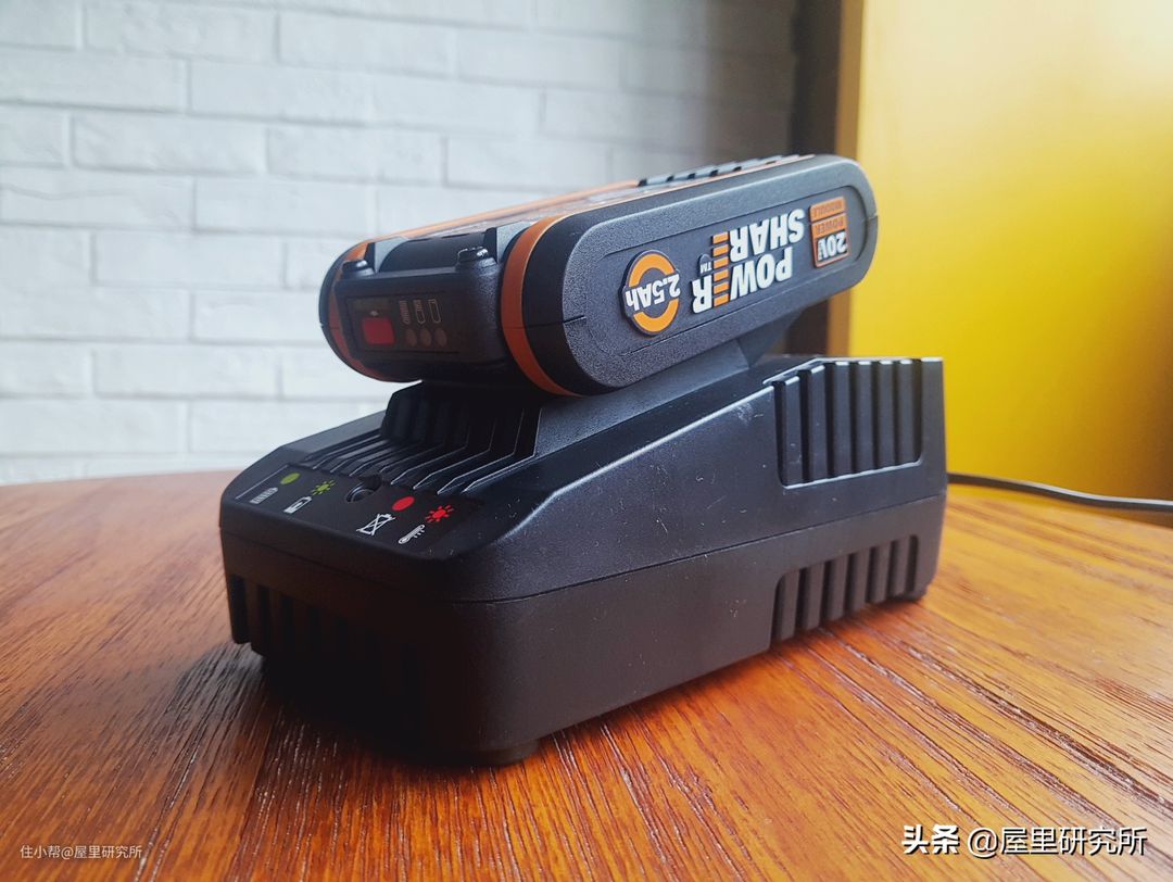 最后再展示一下锂电池是如何充电的,只要把他按在锂电充电器上就行了,中间显示充电的状态,多嘴一句,这造型看着还挺像星球大战里的机器人的。