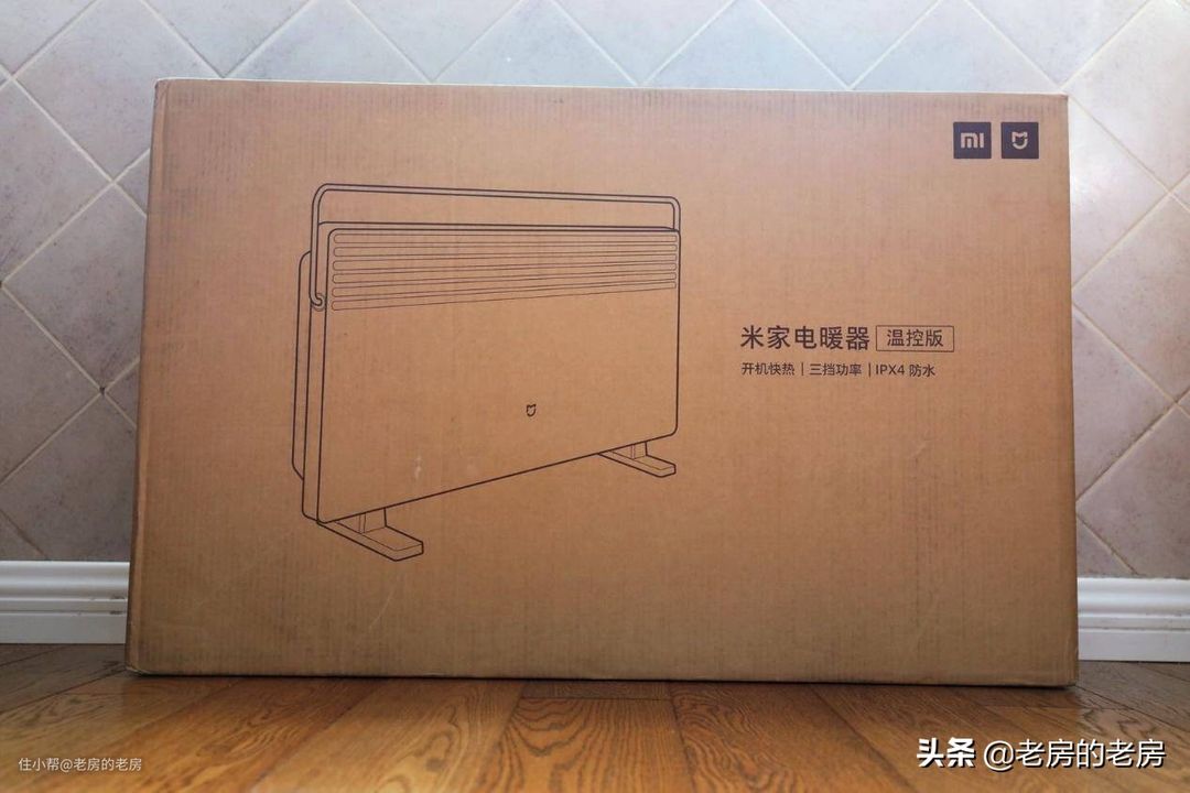 米家电暖器的包装箱上也直接给出了三大卖点:开机快热、三档功率以及IPX4级的防水。
