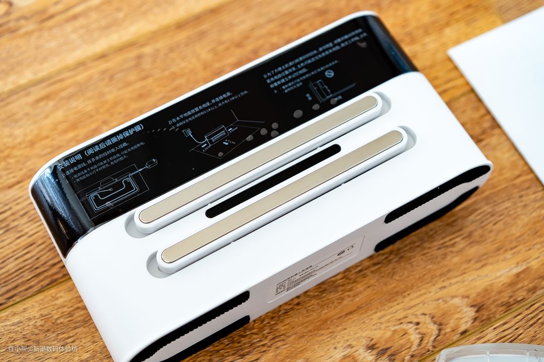 抠开后面的盖子,可以插入电源适配器,同时过长的电源线还可以在盒中缠绕几圈,作为绕线器使用。