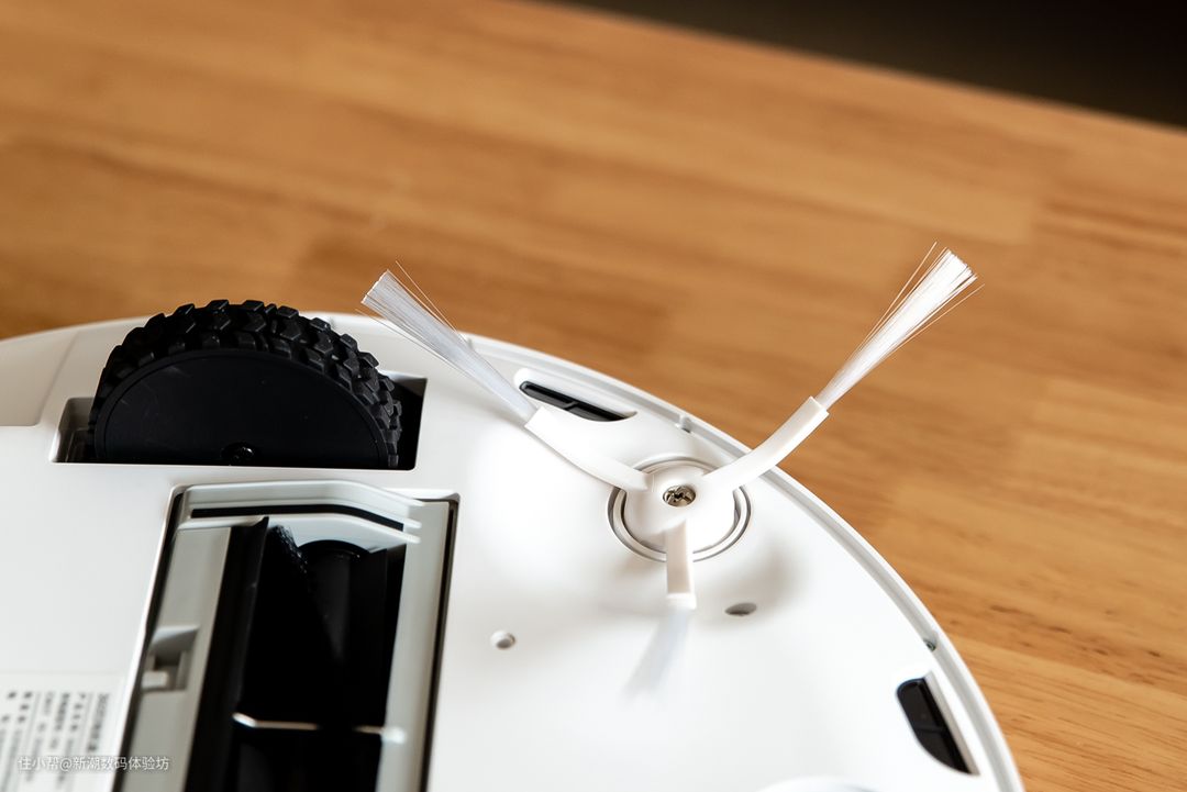 采用了主流的单边刷结构,扫地机器人用单边刷好还是双边刷好,向来都有争论。我查了一些资料,单边刷的好处是不会打飞灰尘,造成二次污染,所以在扫地机器人吸力足够强大的前提下,定位较高的扫地机器人都会采用单边刷这种设计,而双边刷往往是在扫地机器人本身吸力不太强的时候起到一个辅助的作用。