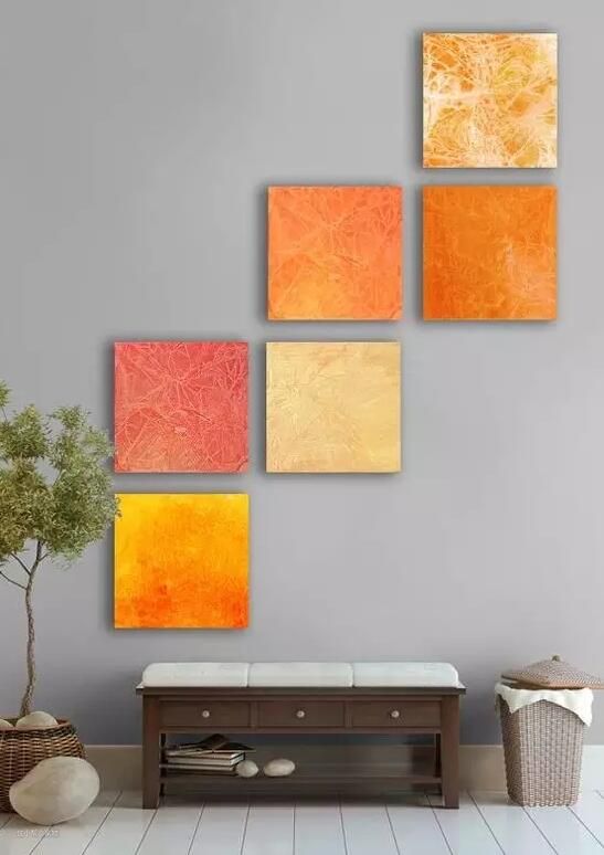 这种利落的橙色线条就比较有现代感了,在配合以简约大方的装饰画,清新又自然。