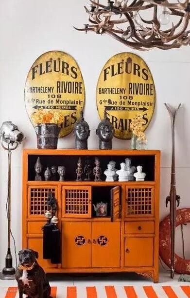 发黄的橙色绝对是最容易带出复古感的,尤其摆上各种精致的古铜摆件之后,格调十足。