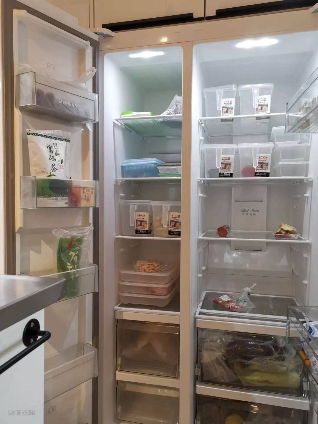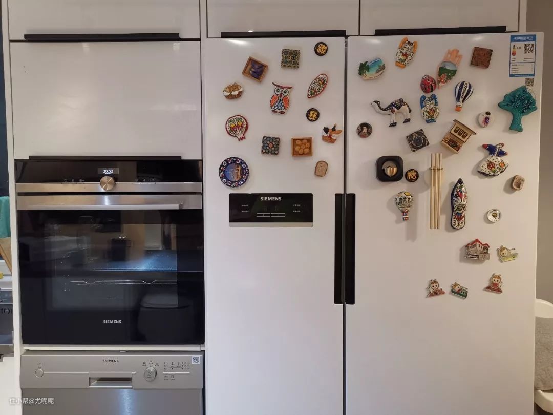 因为老婆喜欢做甜品,并且也喜欢吃水果,所以在我们装修之初就确定了要买对开门大冰箱,来在确定预留空间大小时发现所有西门子610L的大小的冰箱尺寸都一样,所以就按照这个尺寸来预留了。
